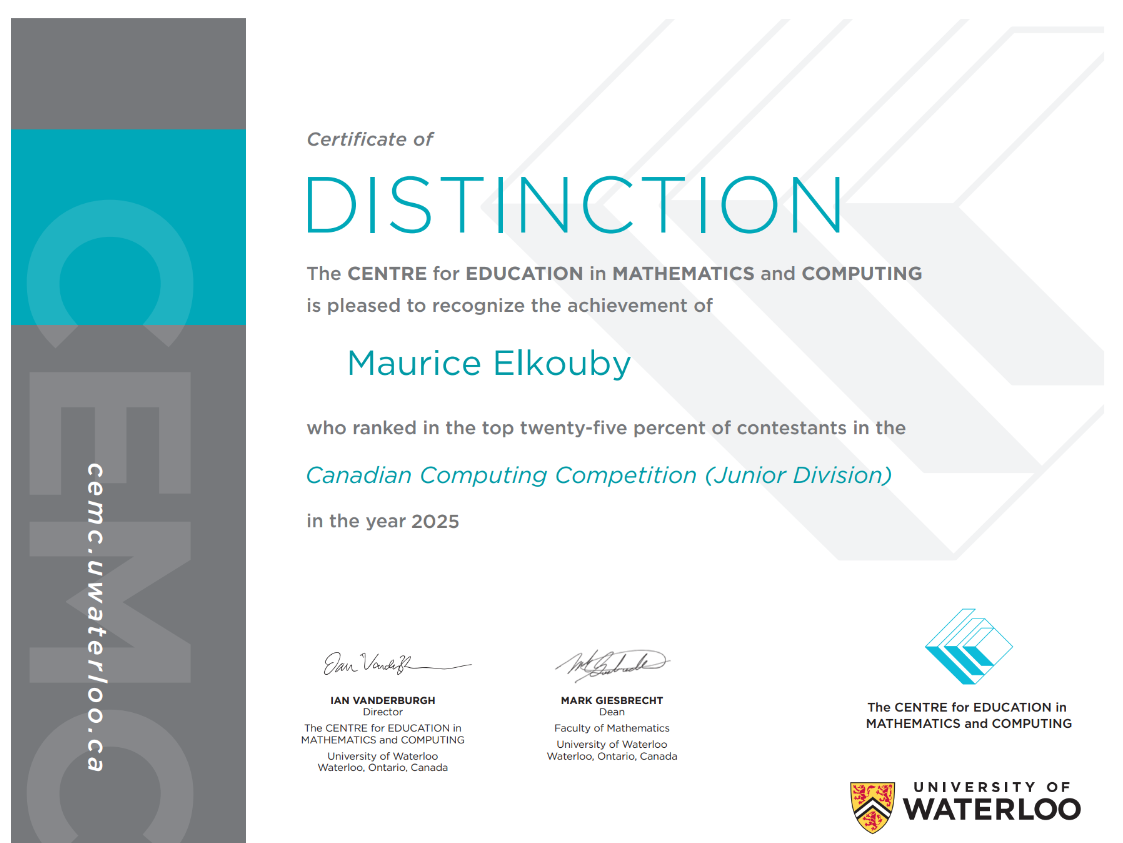 Top 25% in the CCC, showcasing algorithm problem-solving in C++.